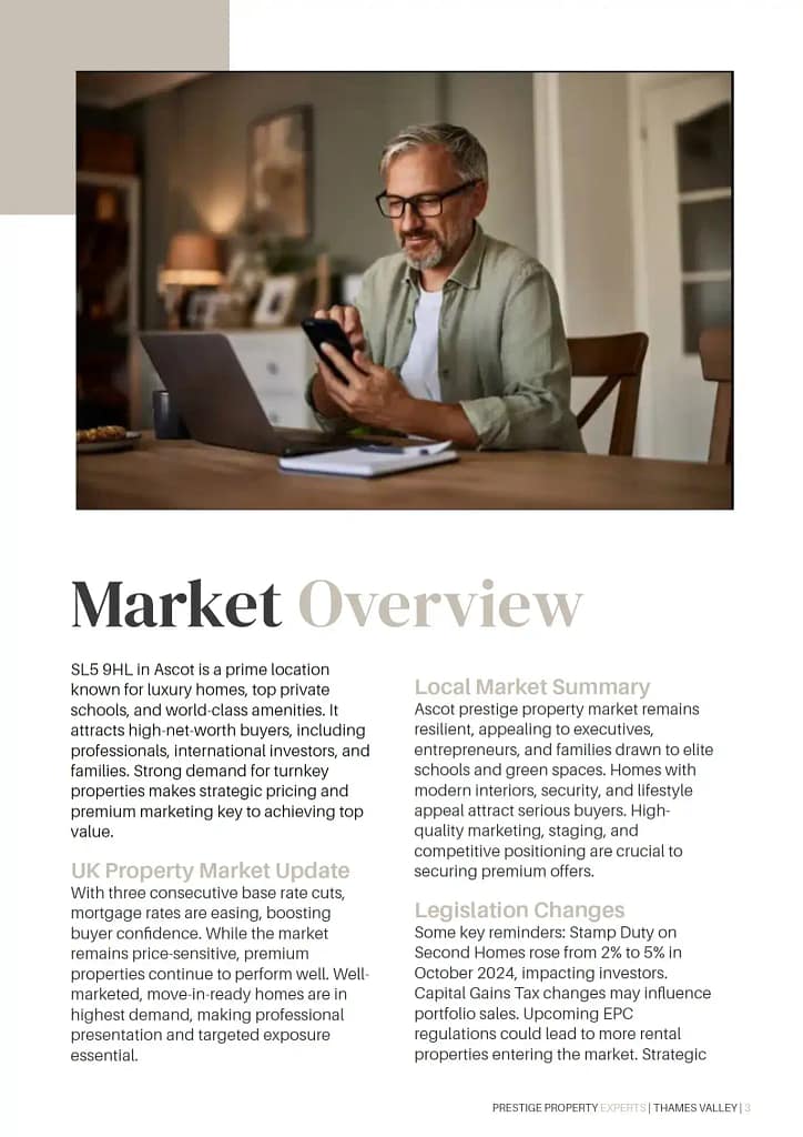 The only viable way to assess your options in the current market. After an initial booking call, we will come to you fully prepared with relevant market data to discuss a tailored marketing strategy and a timeline for the sale of your property.